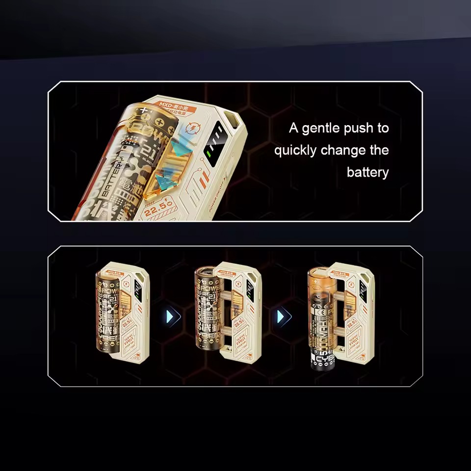 بدنه دستگاه از پلاستیک فشرده ABS ساخته شده و با جزئیات شفاف و رنگبندی مدرن، حال و هوایی از دنیای آینده را تداعی میکند. نمایشگر LED هوشمند در بخش کناری، میزان شارژ باقیمانده را با ظاهری زیبا نمایش میدهد و طراحی آن اجازه میدهد تا باتری با یک حرکت ساده از جای خود خارج و باتری جدید جایگزین شود. این ویژگی باعث شده که K-P6 نسبت به پاوربانکهای معمولی متمایز باشد و آزادی بیشتری در استفاده طولانیمدت فراهم کند.